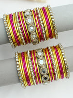 Introducing our 50-Piece (2 Set) Yellow & Hot Pink Bangle Set, a beautifully crafted ensemble perfect for any occasion. This set features a stunning combination of simulated faux pearls and mirrors that will add a touch of elegance to your look.