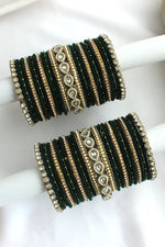 Elevate your accessory collection with this exquisite Bangle Set, a perfect blend of traditional charm and contemporary elegance. Crafted with precision, these bangles feature stunning details like Faux Pearls, CZs and Simulated Kundans for a mesmerizing effect.