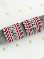 Introducing our 42 PC Silver Tone Hot Pink & Pastel Pink Bangle Set, a beautifully crafted ensemble perfect for any occasion. This set features a stunning combination of simulated Polki, Glitters and Diamond Czs that will add a touch of elegance to your look.