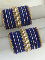 Introducing our 54 Piece (2 Set) Blue Bangle Set, a stunning ensemble studded with Czs, simulated Polkis, Stones and faux pearls.