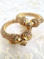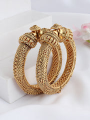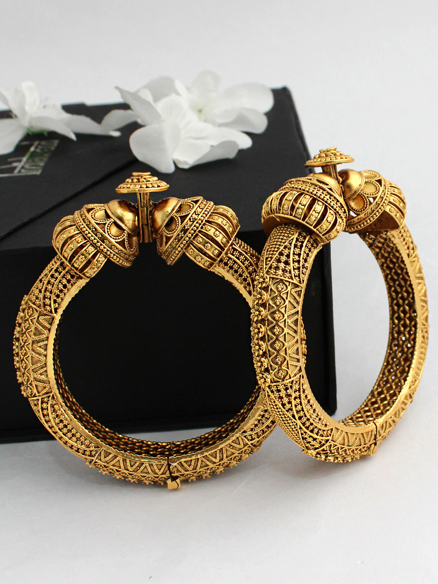 Introducing our Gold-Plated Screw Opening Bangle Set, crafted on a base of high-grade alloy metal, this pair of bangles features a convenient screw opening design, combining style and ease of wear. Elevate your ensemble with the timeless charm of these beautiful bangles, adding a touch of elegance to any occasion. Each piece tells a story of tradition, craftsmanship, and devotion, capturing the essence of timeless beauty.