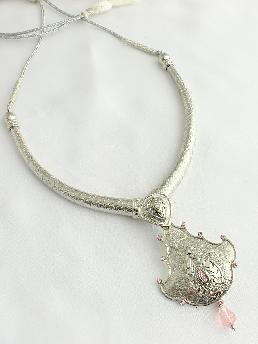Introducing our Silver Tone Necklace, delicately adorned with Pink CZs for a touch of elegance. Crafted on a base of high-grade alloy metal, this piece combines timeless design with contemporary style, making it a versatile accessory to complement your attire.