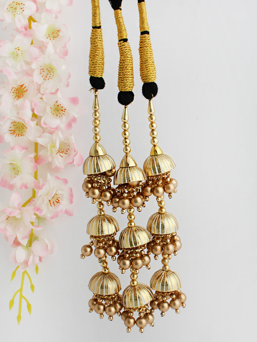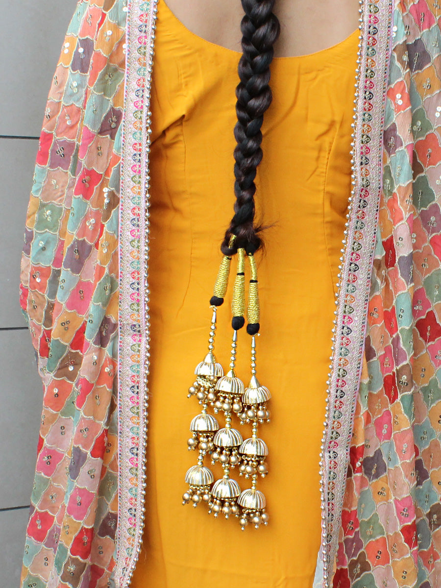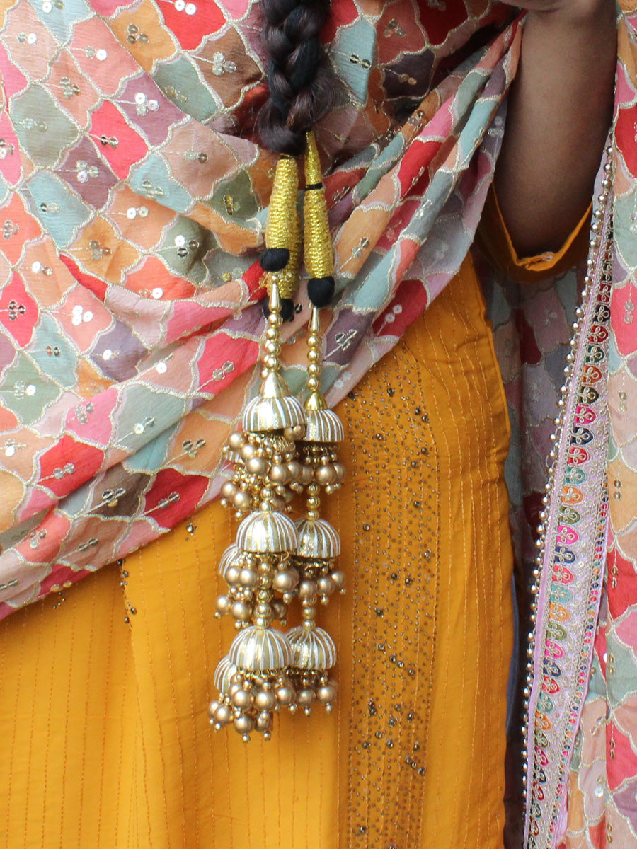 • Punjabi traditional paranda / parandi braid decoration choti hair accessory adorned with gota and golden beads.