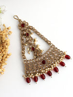 The Gold Tone Jhoomer Passa is studded with simulated polkis, faux pearls, and beads. The Jhoomer size is approximately 110mm(L) x 60mm(W) or 4 1/2" x 2 1/2". The base is made of high-grade alloy metal.