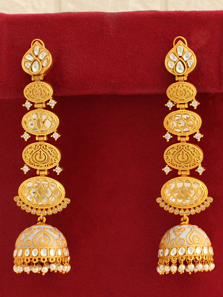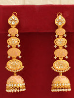 The Gold-Plated Long Jhumki/Jhumka Earrings are a stunning pair of earrings with intricate details. Here are the details:
