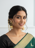 The graceful ear chains add a regal touch, making them a striking statement piece for weddings, festive occasions, and cultural celebrations. Crafted on a durable alloy metal base, they promise lasting beauty and comfort through every special moment.