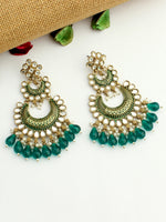 Measuring approximately 85 x 45mm or 3 3/4" x 1 3/4", these Chandbali earrings feature post back findings for pierced ears. Chandbali earrings have earned their place as a timeless and iconic element of Indian jewelry, celebrated for their graceful design and cultural significance. They remain a popular choice, adding a touch of tradition and elegance to any jewelry collection.
