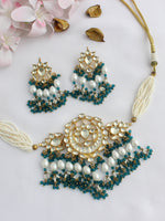 Crafted with precision, the combination of simulated Kundans, hot pink stones, and faux pearls adds a regal touch to this choker set. The adjustable cord ensures a comfortable fit, and the post-back earrings provide ease of wear. This set is perfect for making a statement and adding a touch of glamour to your ensemble.