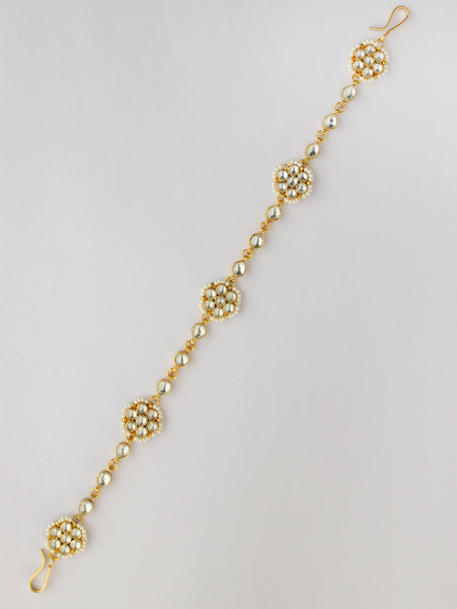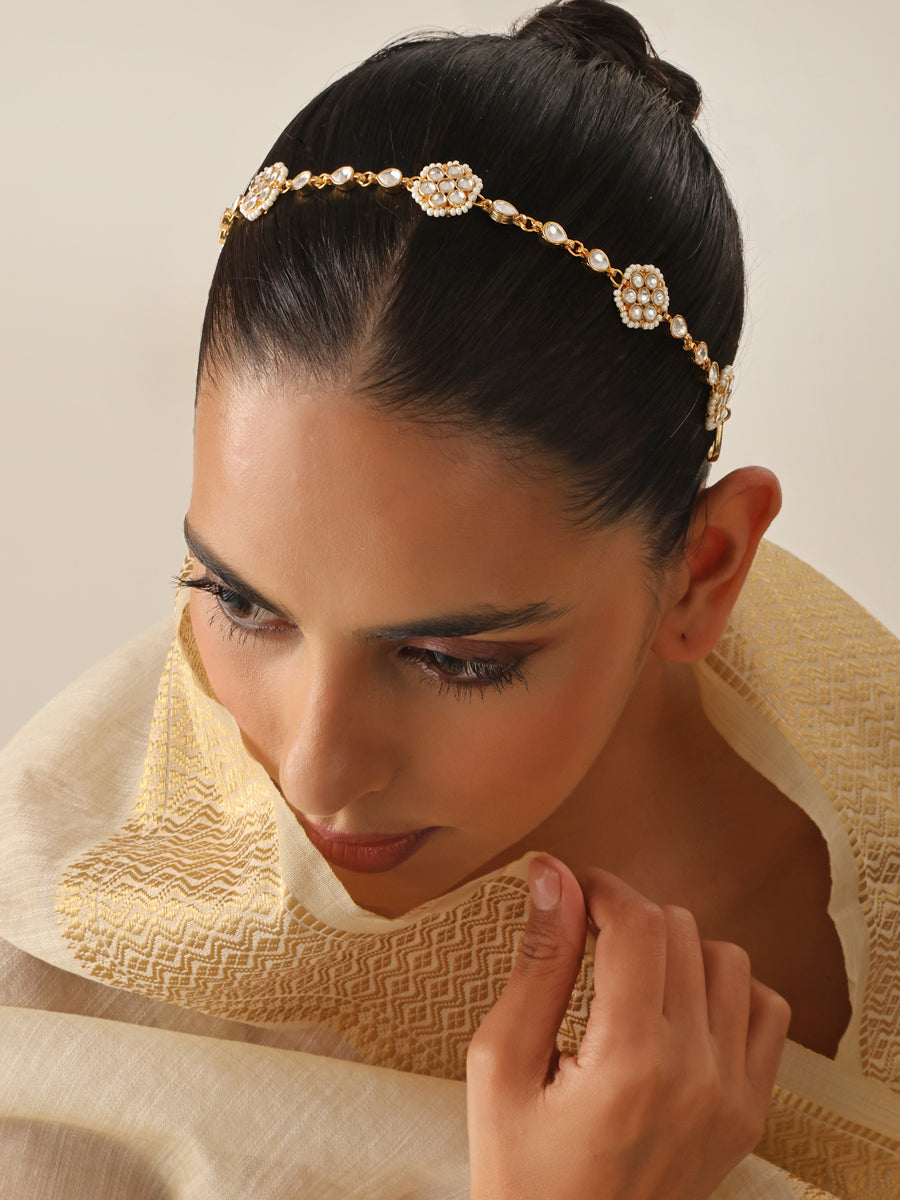 - Gold Plated Sheeshphool Mathapatti Studded with Simulated Kundan and Pearls