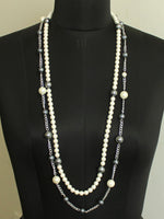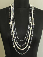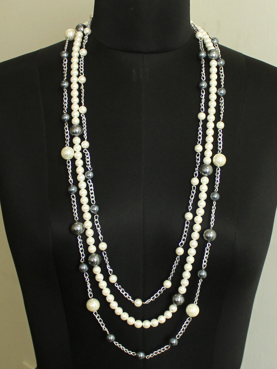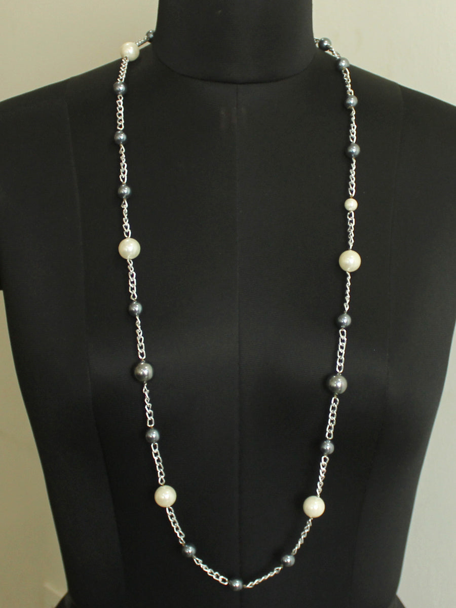 Silver Tone Necklace studded with Simulated Pearl and Grey Beads