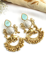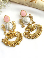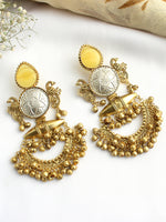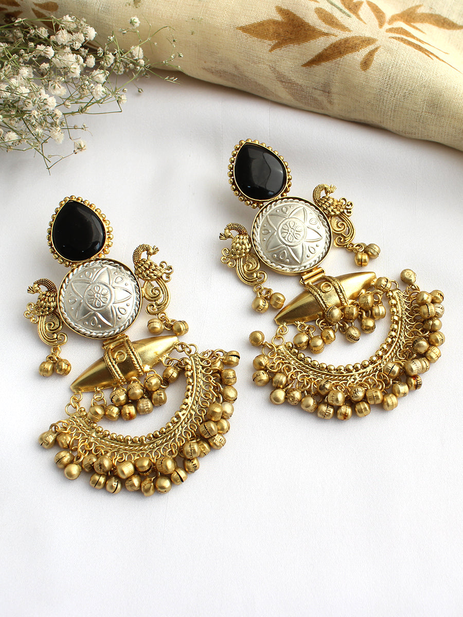 - Design: Two Tone earrings with simulated stones and golden beads.