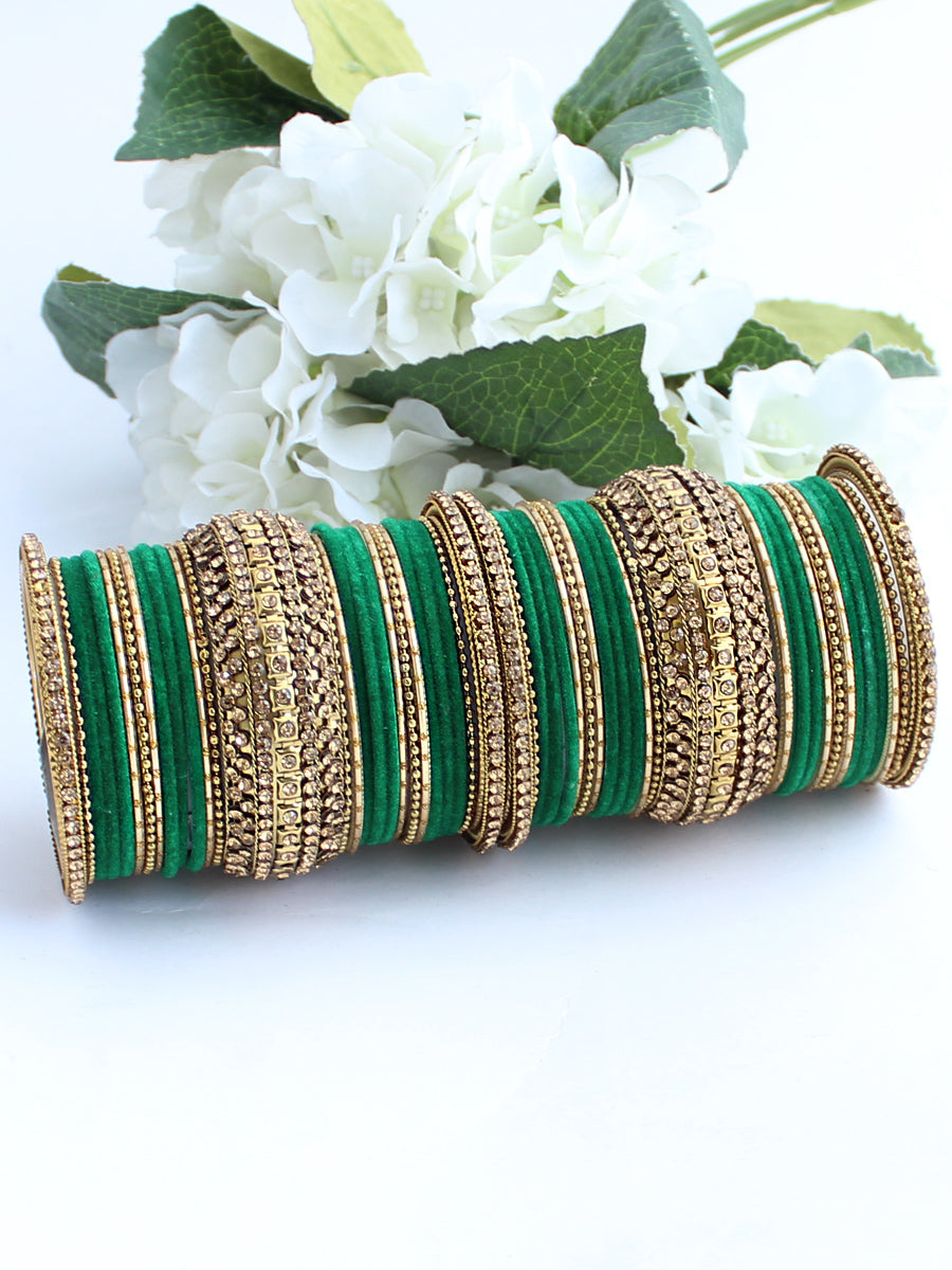 Elevate your style with the 54 Pc Velvet Bangle Set, a perfect blend of richness, sparkle, and versatility. Whether it's a celebration or a special event, these bangles are designed to make a statement and enhance your overall look.