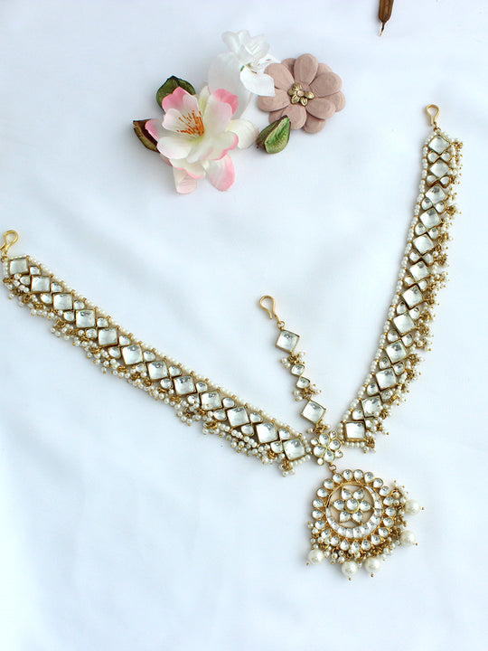 The Wedding Bridal (Dulhan) Mathapatti Headpiece is a stunning accessory designed to enhance the bridal look. Here are the details: