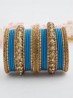This bangle set is designed to add a touch of glamour to your wrists, combining the elegance of gold tone with the sparkle of CZs and glitter. The set of 26 bangles offers versatility in styling, allowing you to wear them individually or stack them for a more dramatic look. The use of high-grade alloy metal ensures durability and a polished finish. It's a perfect accessory to complement both traditional and contemporary outfits.