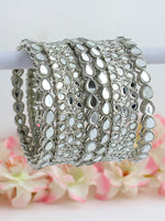 The Gold/Silver Tone Bangles are adorned with mirrors, creating a distinctive and eye-catching design. Note: This set is for one hand only.