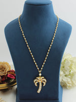 The Gold Tone coconut tree pendant Long Necklace, adorned with natural mother of pearls and beads for a graceful look. Crafted on a base of high-grade alloy metal. The Mother of pearl material's iridescence and smooth texture make it versatile and suitable for both casual and formal occasions.