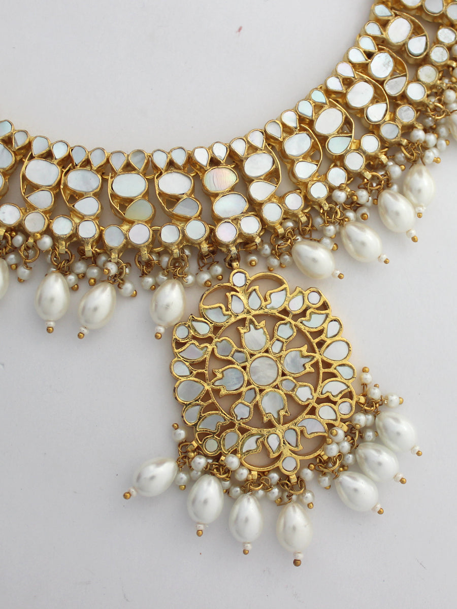 Gold Plated Necklace Set studded with Natural Mother of Pearls and Beads