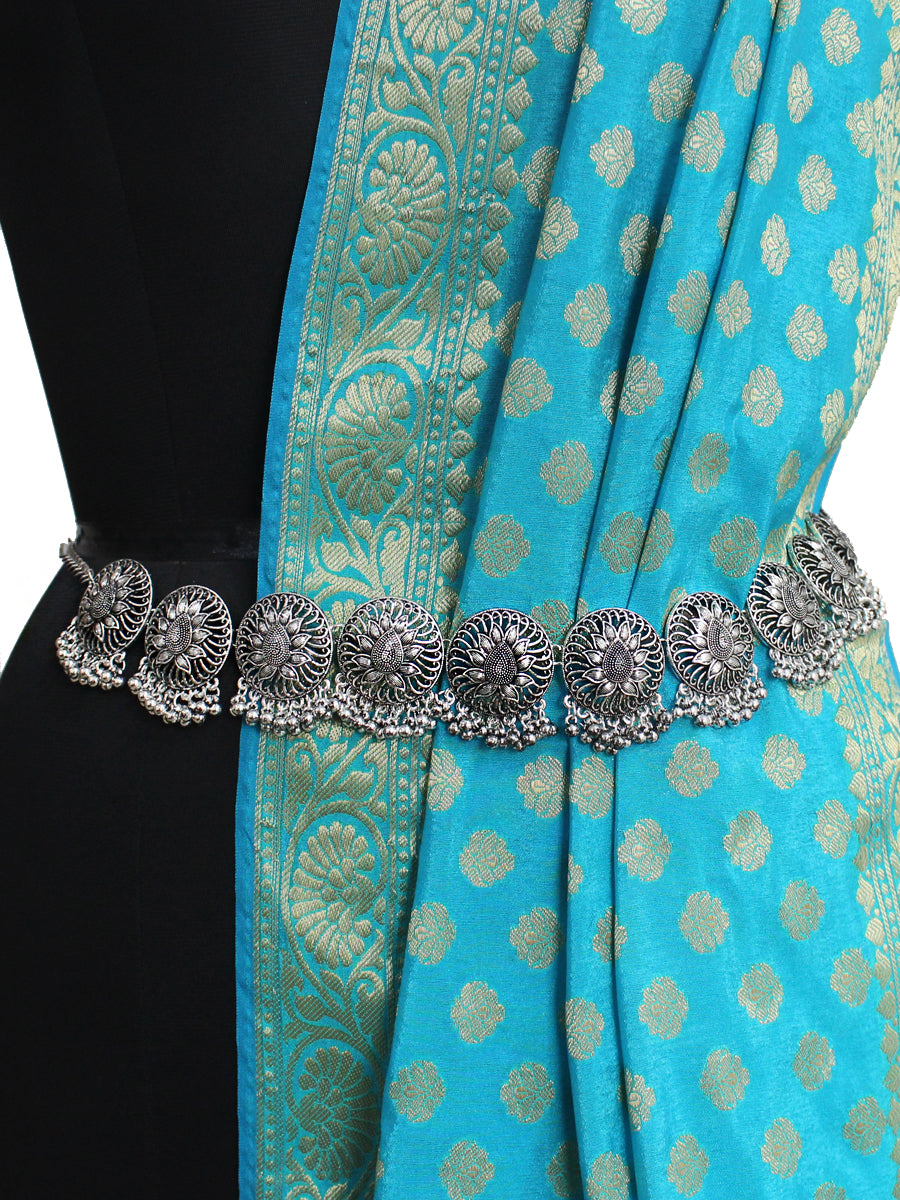 Introducing the Oxidized Silver Tone Belly Chain with Silver Ghungroos: