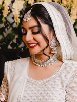 Silver/gold tone choker Necklace set studded with CZs and faux pearls.