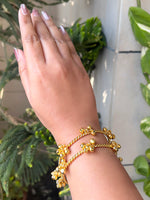 Enhance your ethnic look with these elegant gold-tone bangles, adorned with golden ghungroo beads for a touch of traditional charm. Crafted from high-grade alloy metal, they offer durability, a radiant finish, and lightweight comfort — perfect for festivals, weddings, and everyday wear.