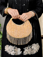 This stunning velvet handbag is exquisitely crafted with cascading crystal bead embellishments that create a glamorous, eye-catching effect. A secure zip closure keeps your essentials safely stored, while the structured velvet handle provides comfortable hand-carrying. Made from luxurious velvet, this handbag perfectly balances style and functionality. The sparkling crystal beads enhance its overall aesthetic, making it a statement accessory for special events, evening parties, weddings, and celebrations.