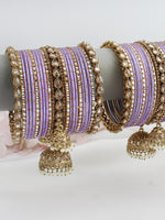 Our 42 Piece (2 set) Lavender Bangle Set-Elevate your accessory collection with this exquisite Bangle Set, a perfect blend of traditional charm and contemporary elegance. Crafted with precision, these bangles feature stunning details like simulated polkis, faux pearls, and CZs for a mesmerizing effect.