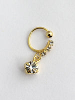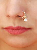 This gold-tone nose ring is adorned with sparkling CZs, adding a touch of glamour to your look. The adjustable, open-ended design eliminates the need for piercing, making it easy to wear. The size is 10mm or 1/2", with a length of 15mm or 1/2". Crafted from high-grade alloy metal, this nose ring combines style and comfort effortlessly. Elevate your style with this chic and versatile accessory.