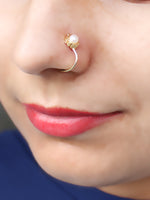 Gold Tone Nose Ring Studded with Golden Faux Pearls.