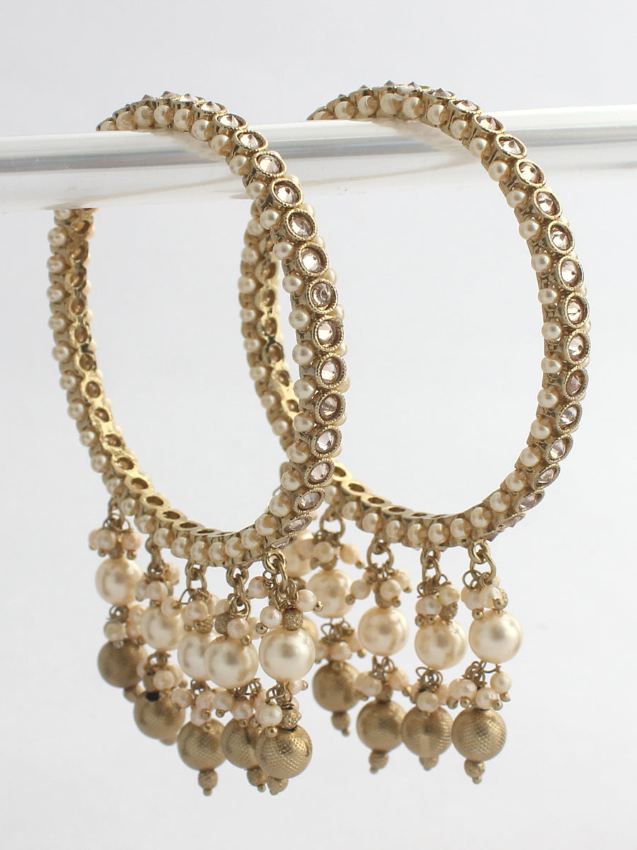 Introducing a beautiful pair of Gold-Plated Latch Lock Jadau Bangle Set, adorned with faux pearls for an elegant and traditional touch.