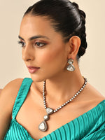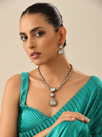 Two tone bib necklace set studded with simulated polki diamonds and CZs.
