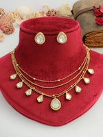 Our Gold Tone Layered Necklace Set, adorned with simulated Diamond Polkis, and Multi Color Stones for a captivating blend of elegance and charm.