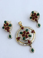 Gold Plated Pendant Set Studded with CZ and Ruby Emerald Stone