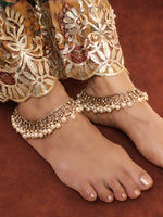 These gorgeous anklets (Payal) are adorned with simulated Polkis and faux pearl beads creating a stunning and traditional look.