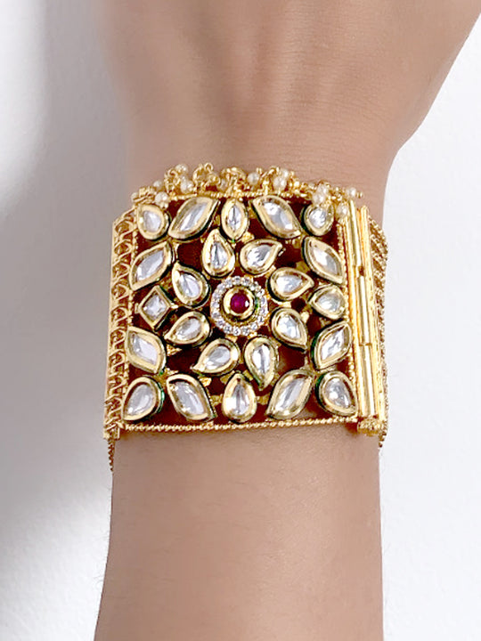 Add a touch of elegance to your jewelry collection with our 1 Pair Two-Tone Screw Opening Bangles. These stunning bangles are intricately studded with simulated Polki diamonds and sparkling CZs, creating a luxurious and eye-catching design. The two-tone finish enhances their versatility, making them perfect for a variety of occasions. Crafted from high-grade alloy metal, these bangles offer both durability and a refined, polished look. The screw opening ensures a comfortable and secure fit, combining style with ease of wear.