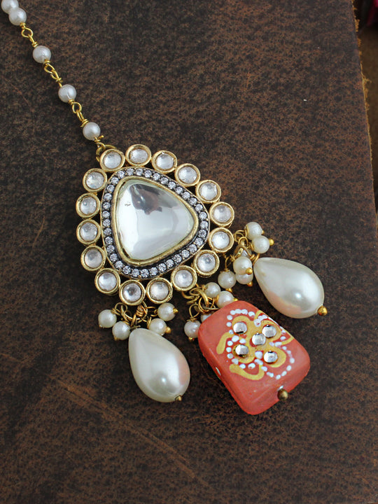 Elevate your look with this exquisite two-tone necklace set, thoughtfully crafted to blend traditional elegance with modern charm. The design features simulated polki diamonds and sparkling CZ stones, creating a radiant, luxurious brilliance. Faux pearls and delicate bead accents add a touch of sophistication, making this set perfect for weddings, festive occasions, or evening events.