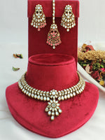 This set is designed to enhance your overall look with its intricate detailing and vibrant elements. The adjustable cord ensures a comfortable fit for all neck sizes. The combination of faux pearls, multi-color stones, and mirrors adds a touch of elegance and uniqueness to the set.