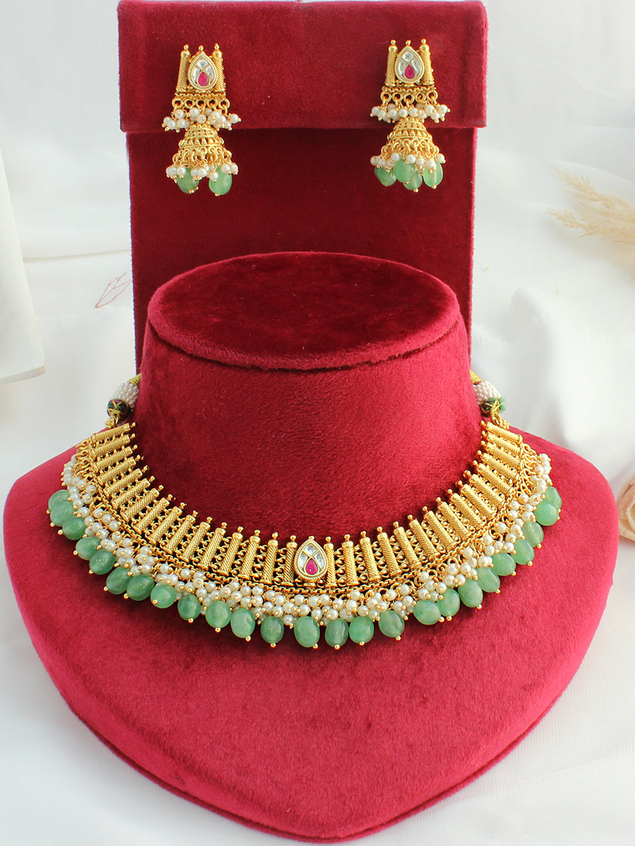 Ambika Necklace Set-Mint Green