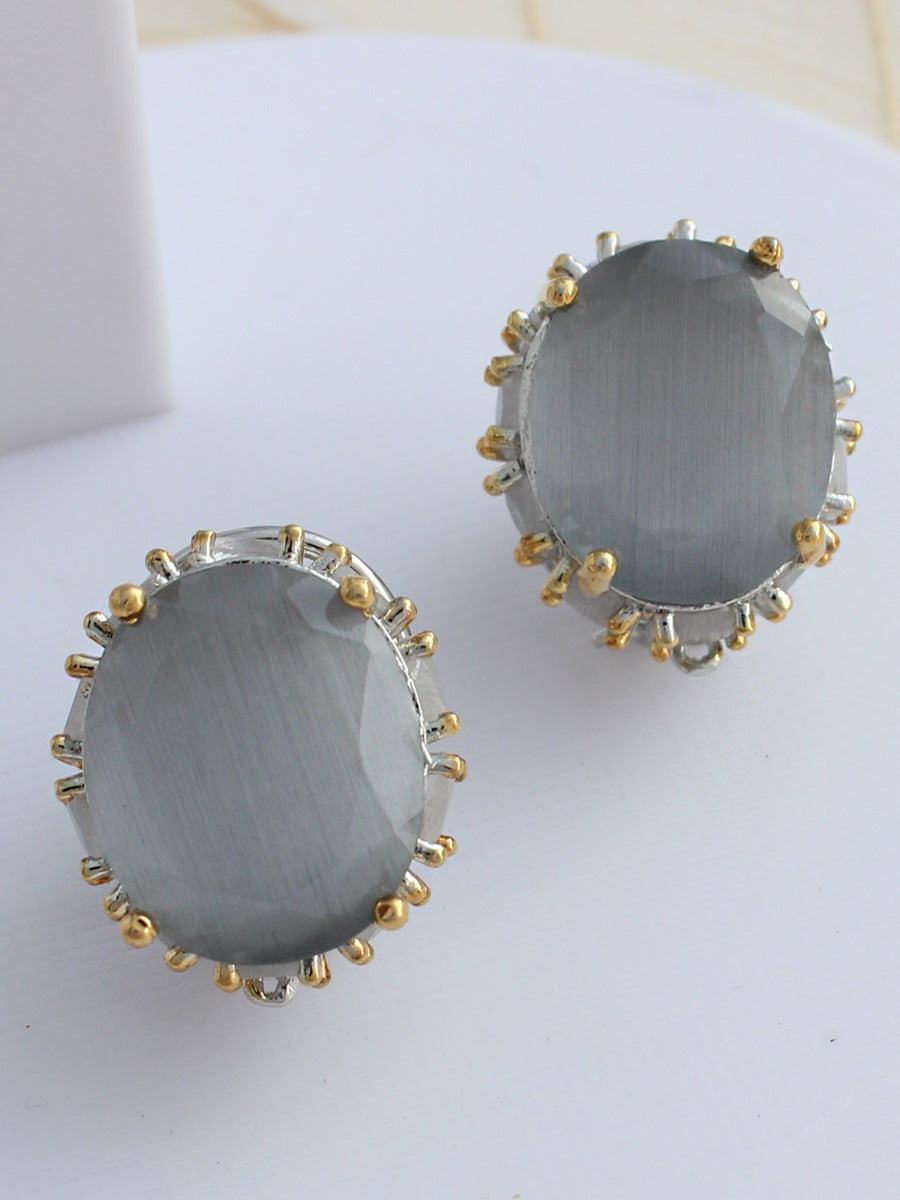 Two Tone earrings studded with simulated diamond CZs and multi stones.