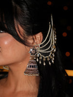 Nushrat Mirror Jhumki Earrings With Ear Chain