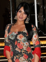Introducing our stunning gold-tone mirror jhumki earrings, beautifully adorned with simulated polkis, mirrors, colorful beads, and faux pearls.These earrings feature a unique 4-layered ear chain that adds an extra touch of elegance and flair. The combination of traditional jhumki design with modern elements makes them a perfect statement piece for any special occasion. Whether you're dressing up for a wedding or a festive celebration, these earrings will add a touch of elegance and charm to your ensemble.