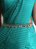 This belly chain is designed to add a touch of elegance and glamour to your ensemble, making it a versatile accessory for various occasions. The use of simulated polki, faux pearls, and the array of colors contribute to its unique and eye-catching appeal.