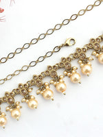 This Antique Gold Tone Belly Chain is a captivating piece adorned with simulated polkis and faux pearls, creating a unique and eye-catching design. With a full length of 53 1/4 inches, it offers versatility in styling and ensures a comfortable fit. Crafted from high-grade alloy metal, this belly chain combines vintage charm with modern elegance. Make a bold statement with this intricately designed accessory that adds a touch of glamour to your ensemble.