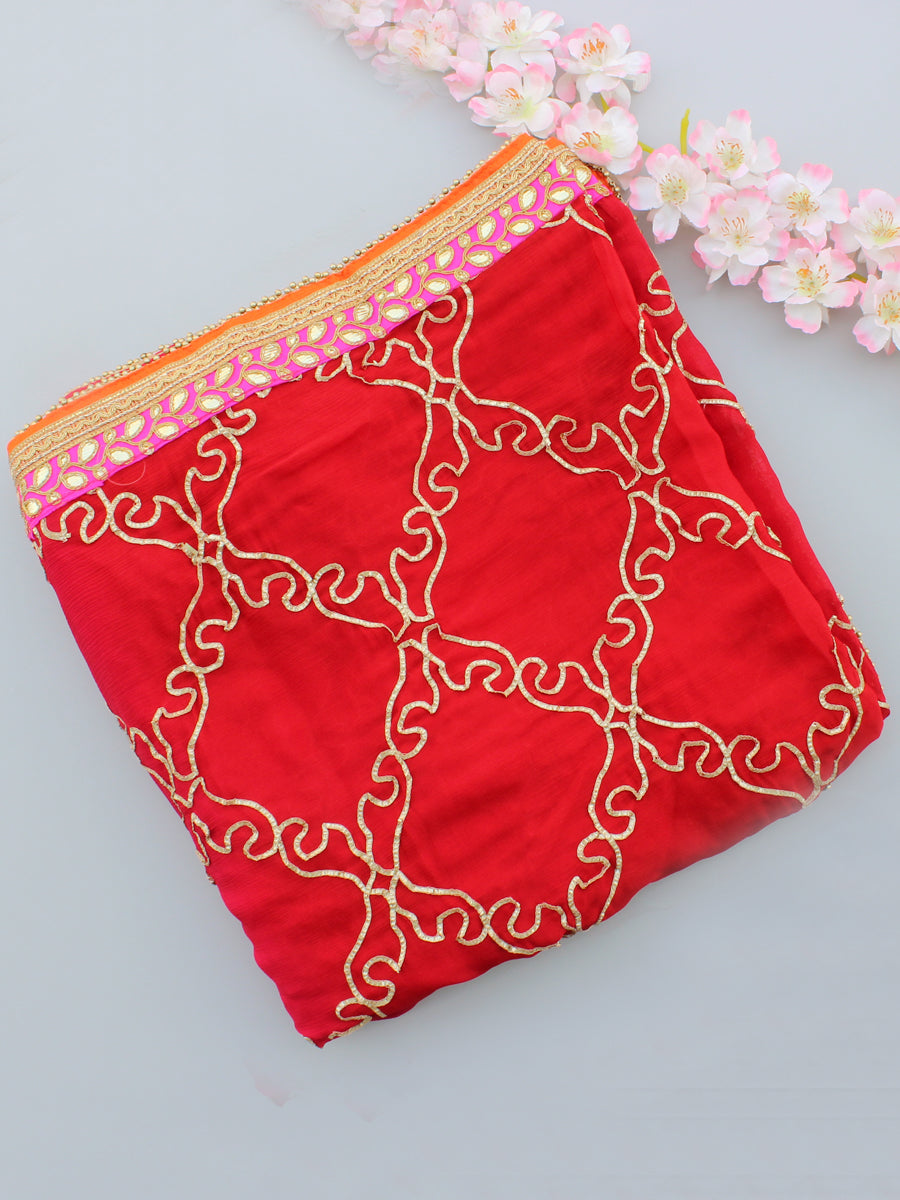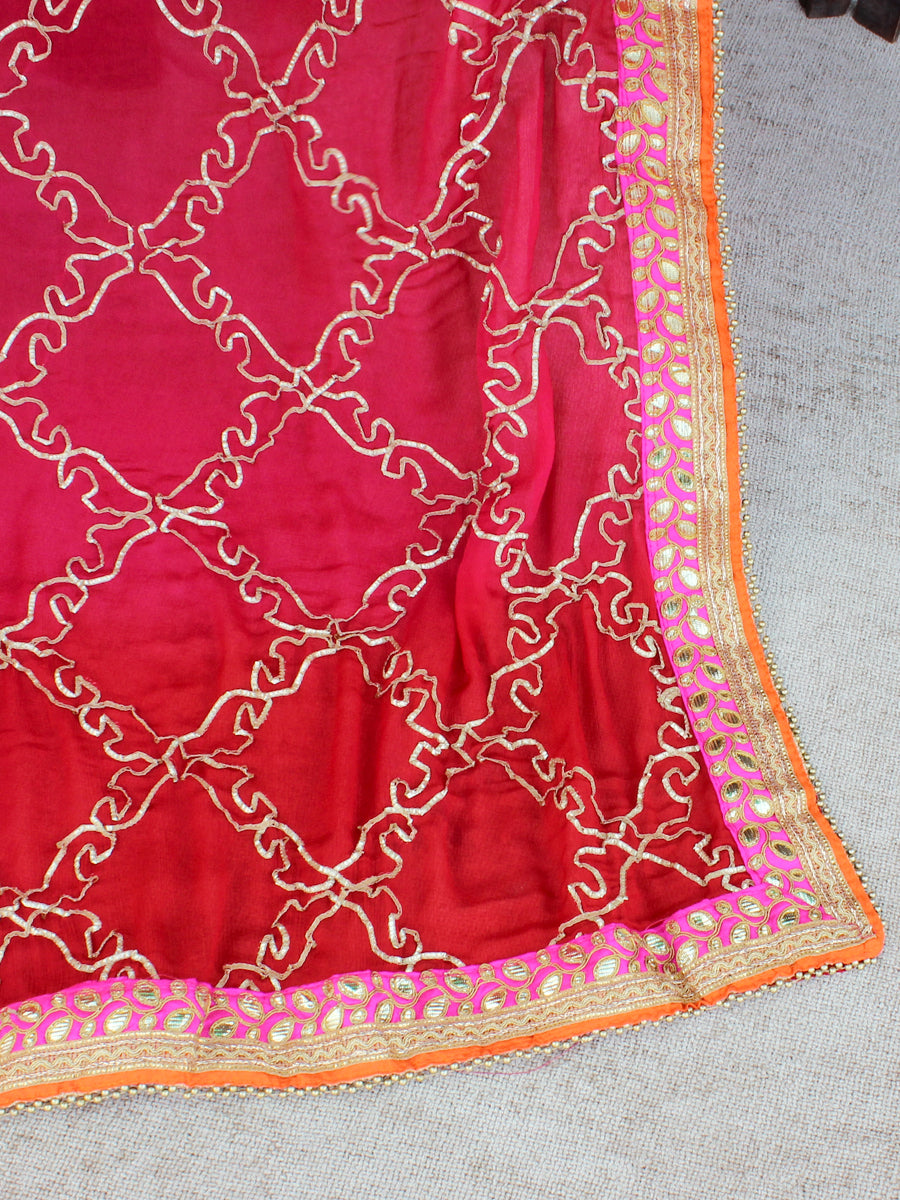 Hot pink shaded dupatta in pure georgette with handcrafted gota patti embroidery.