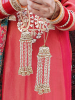 Gold Tone Bridal Kaleeray Studded with Simulated Polki and Faux Pearl
