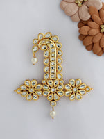 Gold Plated kalgi Turban studded with Simulated Kundan Faux Pearl Maroon and Green Beads.