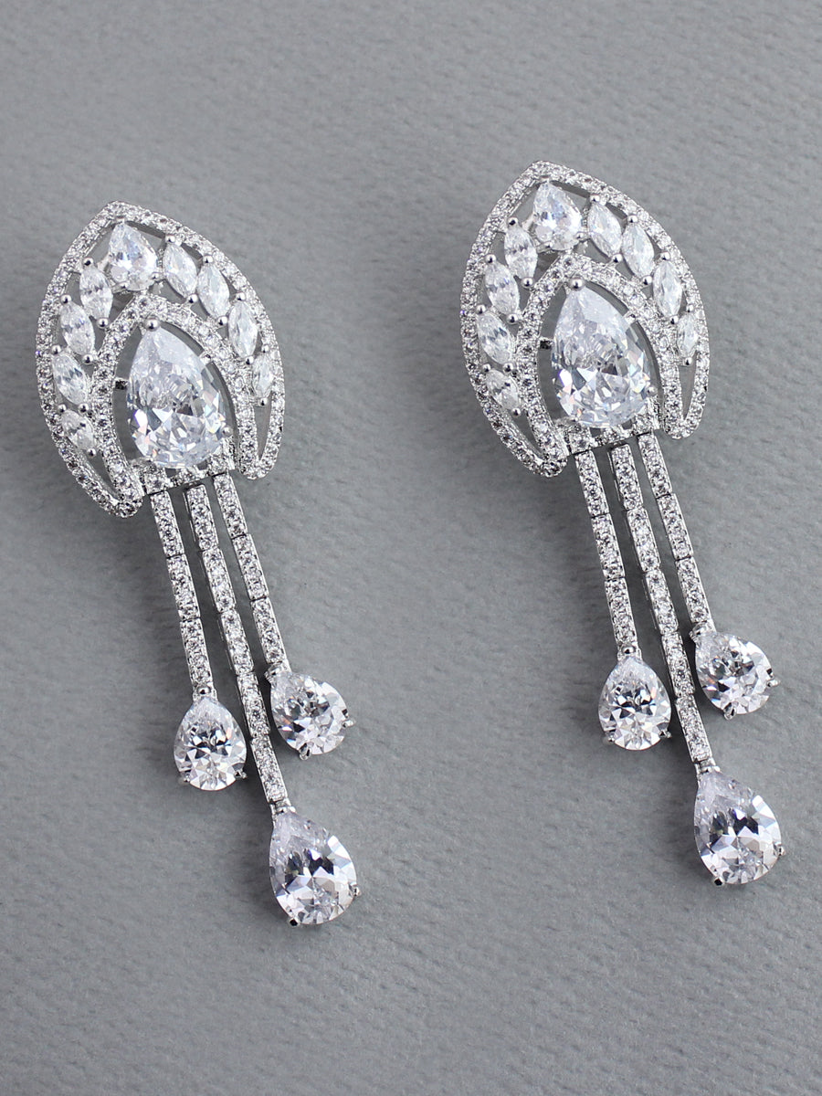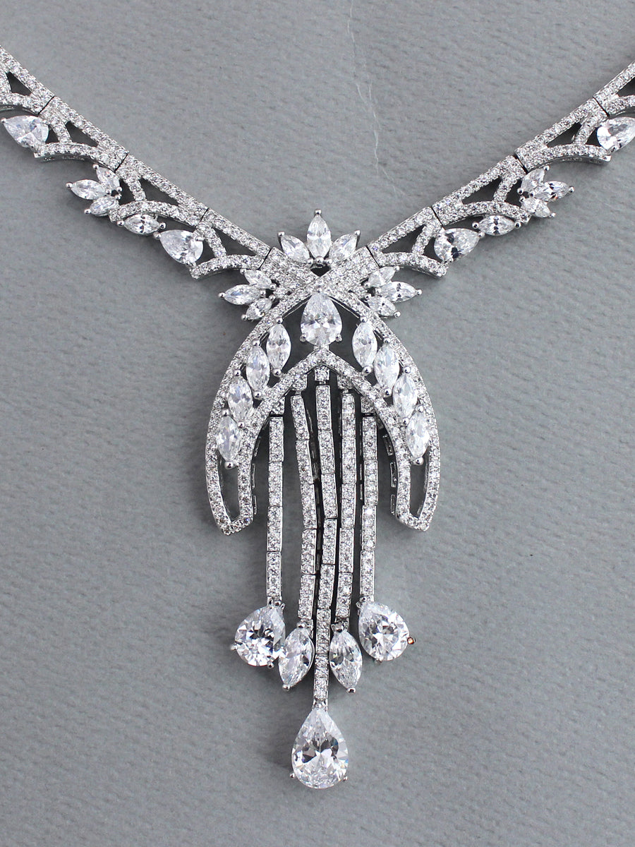 Silver Plated Necklace with Matching Earrings Studded with Simulated Diamond CZs.