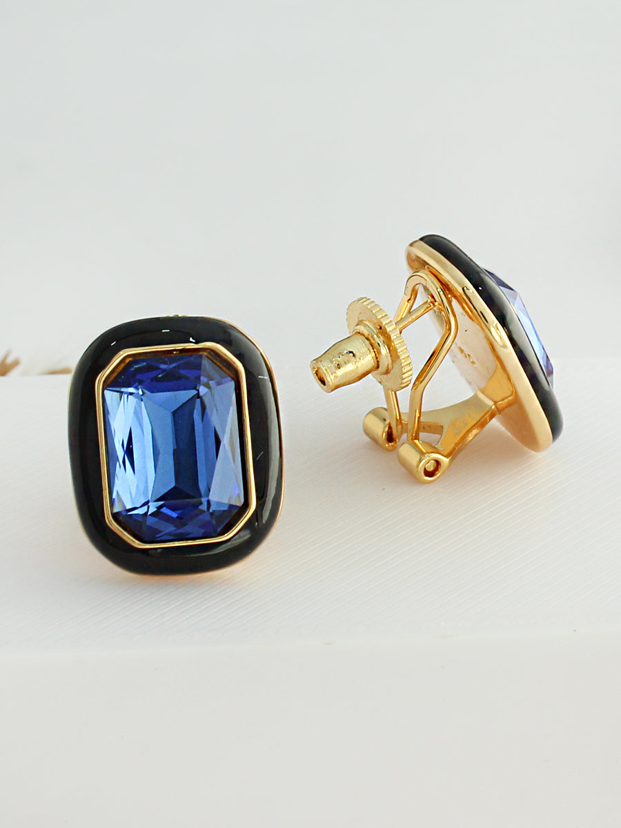 Introducing our Gold / silver stud Earrings, adorned with Simulated multi color Stones and black Enamel. Crafted on a base of high-grade alloy metal. The post-back findings ensure secure and comfortable wear.