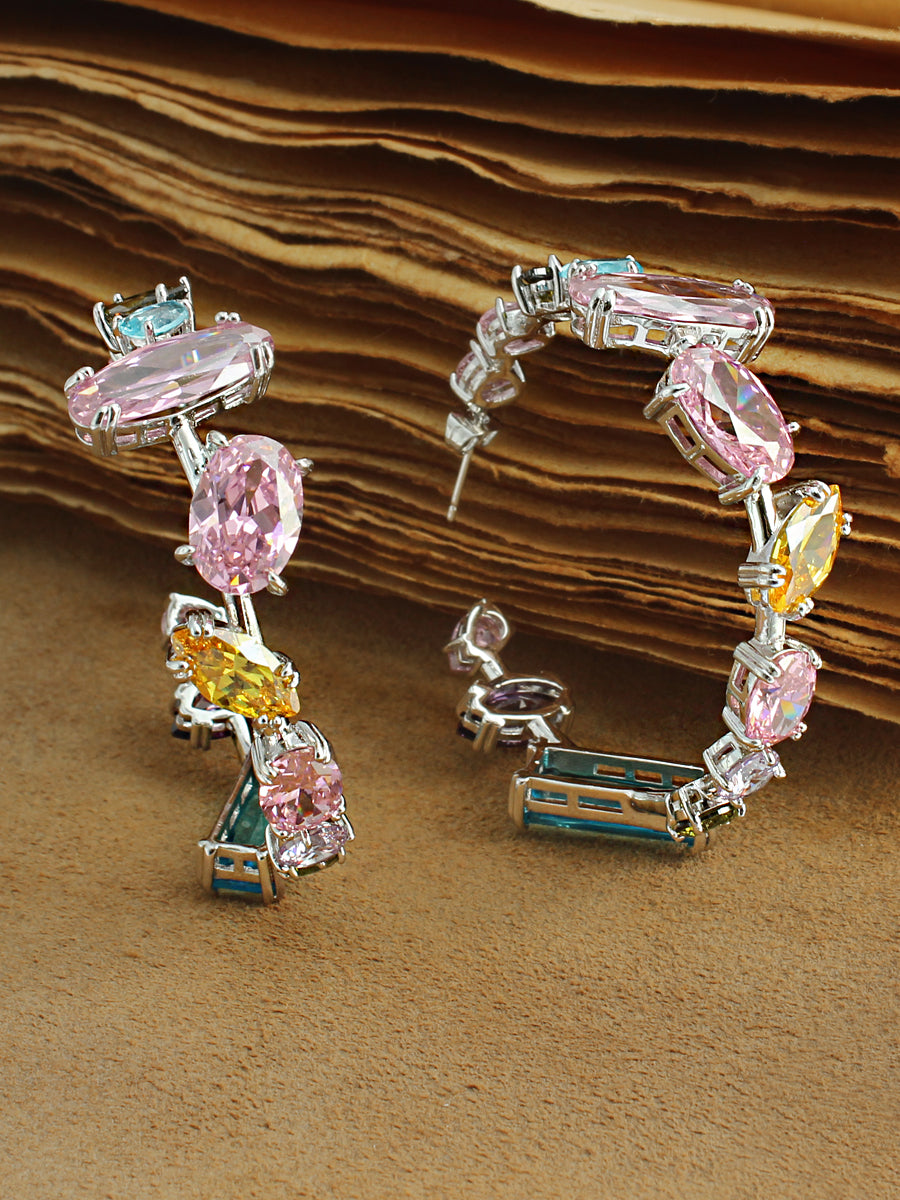 Introducing our silver tone Earrings, adorned with colorful stones for a captivating and stylish look. Crafted on a base of high-grade alloy metal. The post-back findings ensure secure and comfortable wear, these earrings are designed to enhance your overall look with its sparkling and detailed craftsmanship, making it a stunning choice for any occasions.