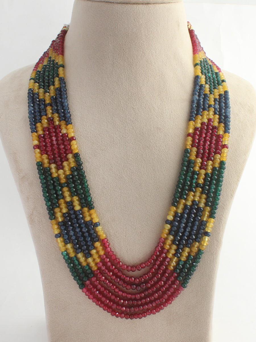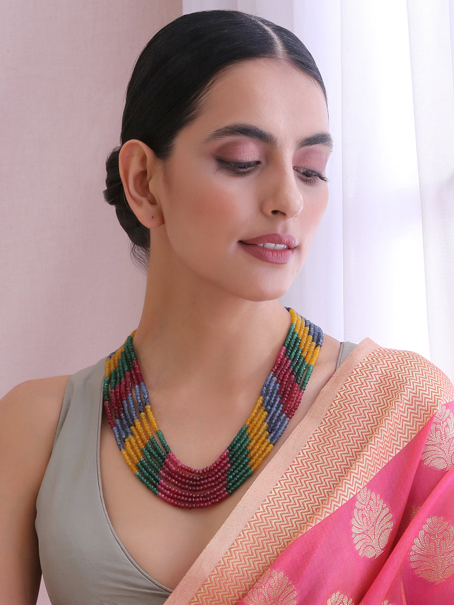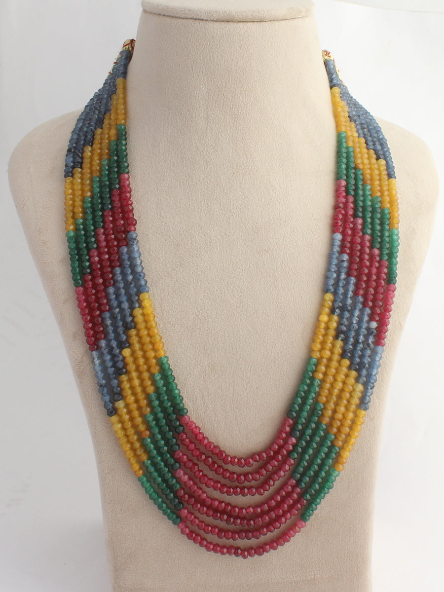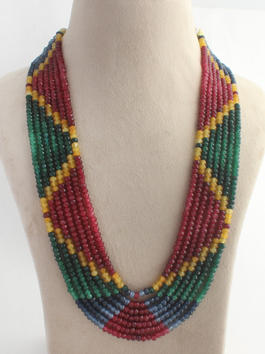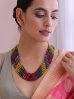 Introducing our 7 Layered Necklace adorned with Multicolor Crystal Beads, a vibrant and eye-catching accessory for a stylish look. The necklace measures approximately 16 inches with an adjustable cord to fit all neck sizes, providing versatility in styling. Crafted on a base of high-grade alloy metal, this layered necklace beautifully combines contemporary design with a burst of colors, making it a perfect statement piece to enhance your outfit and express your unique style.