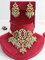 Crafted from high-grade alloy metal, this choker set showcases a beautiful combination of traditional elements and vibrant colors, adding a touch of sophistication to your ensemble.